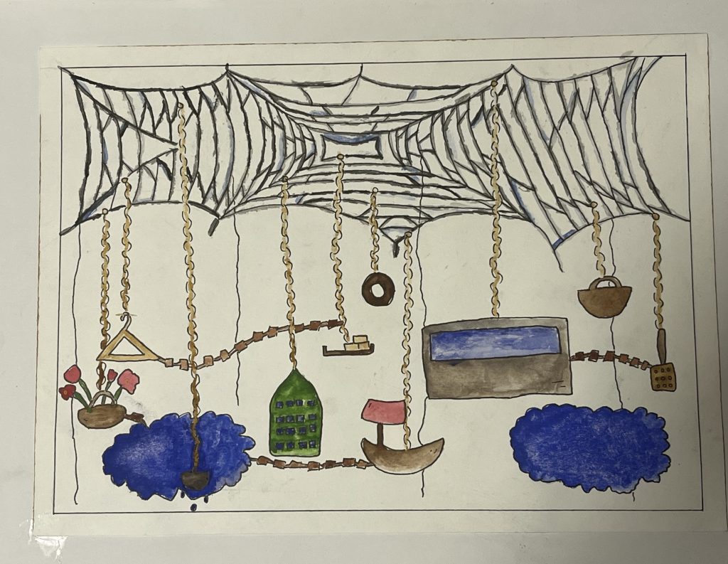 “Zeichnung Geschichte hängende Stadt”
